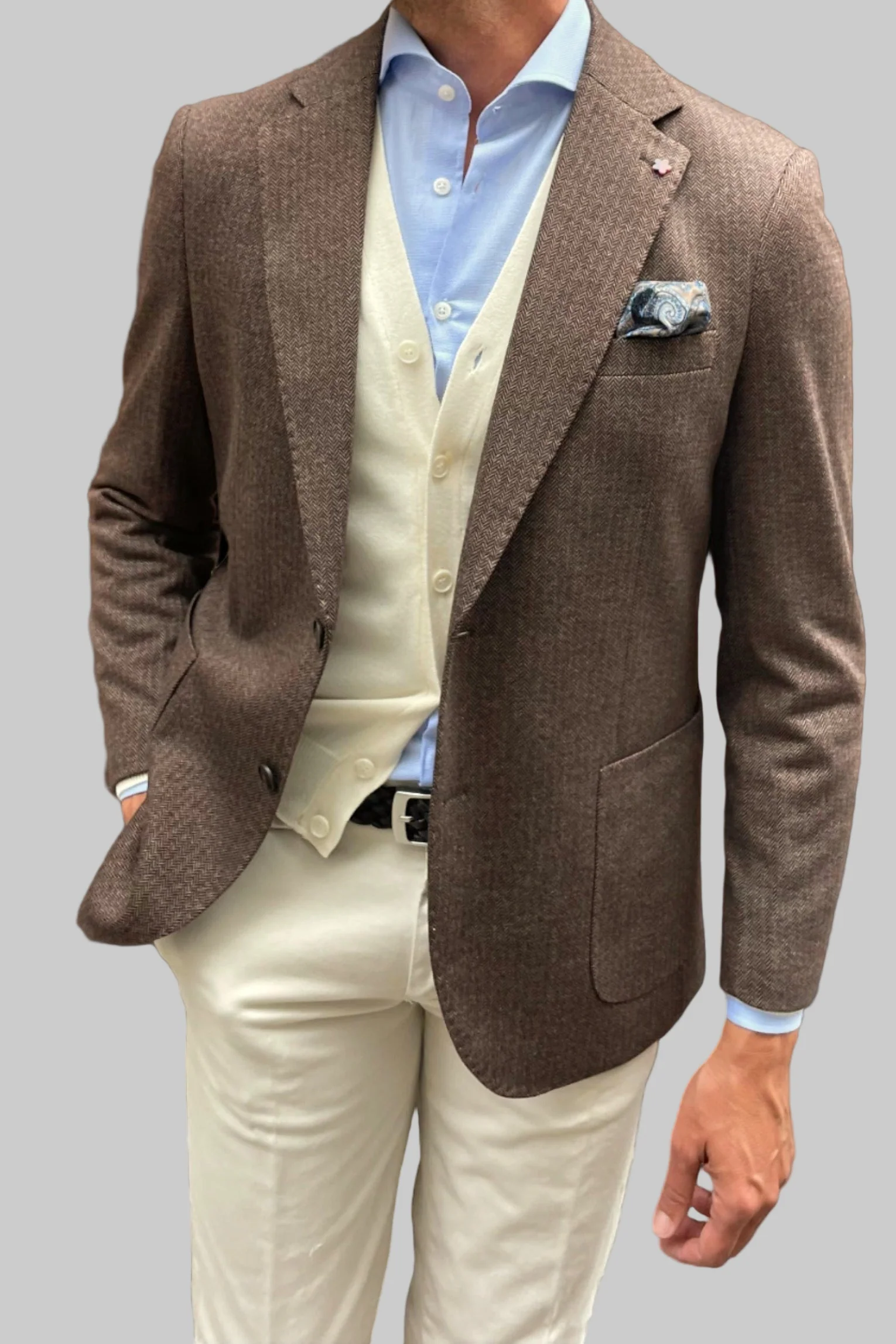 Otoñal y elegante, la Americana Spiga funciona de maravilla como pieza clave sobre tonos neutros y fondos de armario.
