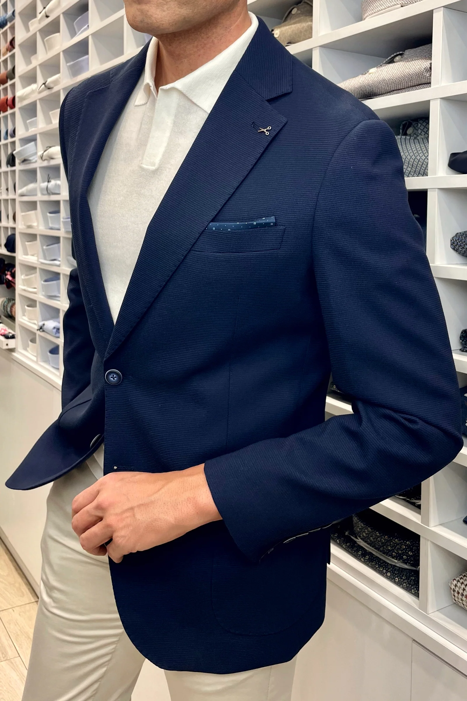 El modelo mide 1,85m y lleva talla 50