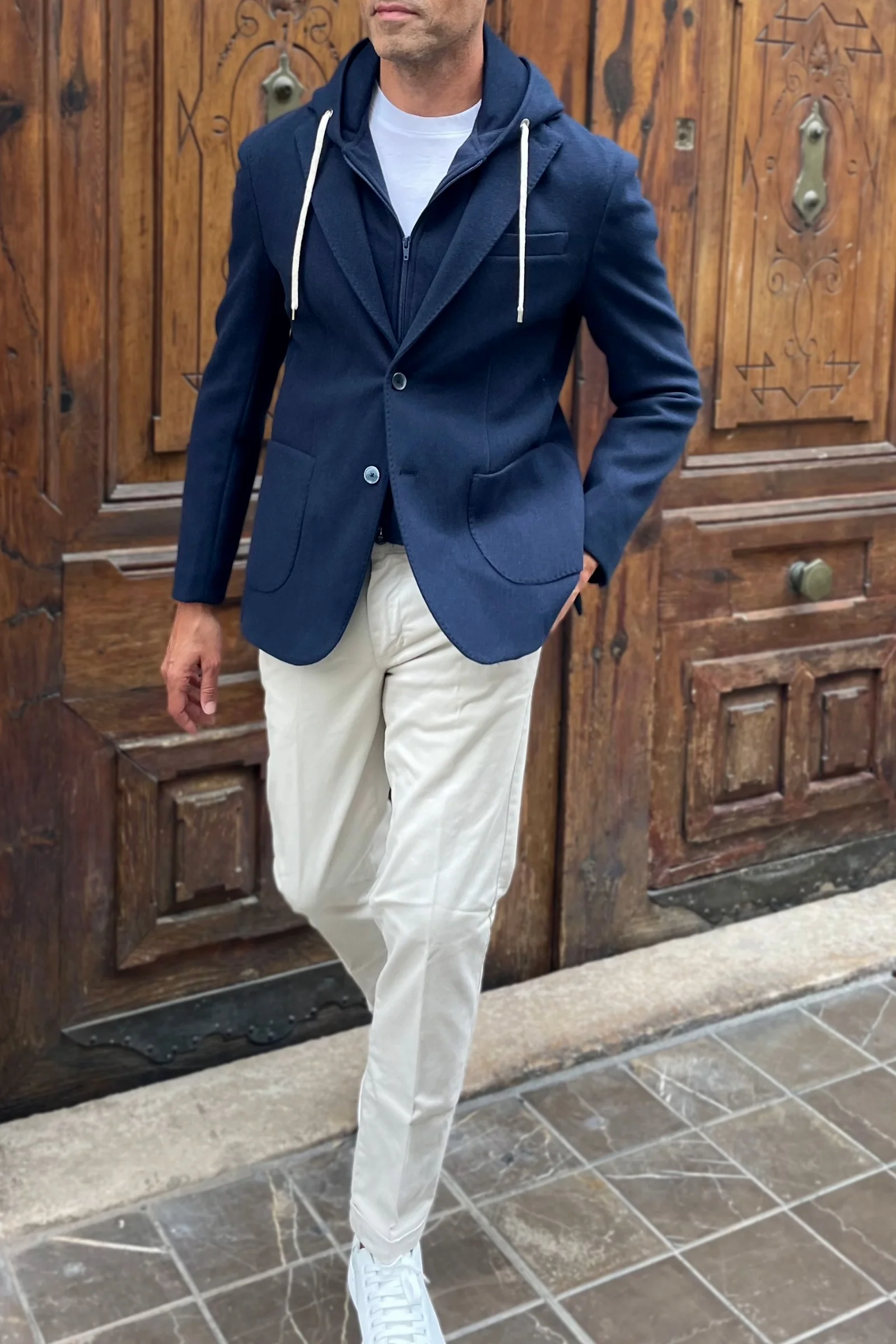 Con capucha y chaleco desmontables, la Americana Roberto, redefine el equilibrio entre lo clásico y lo sport-chic..