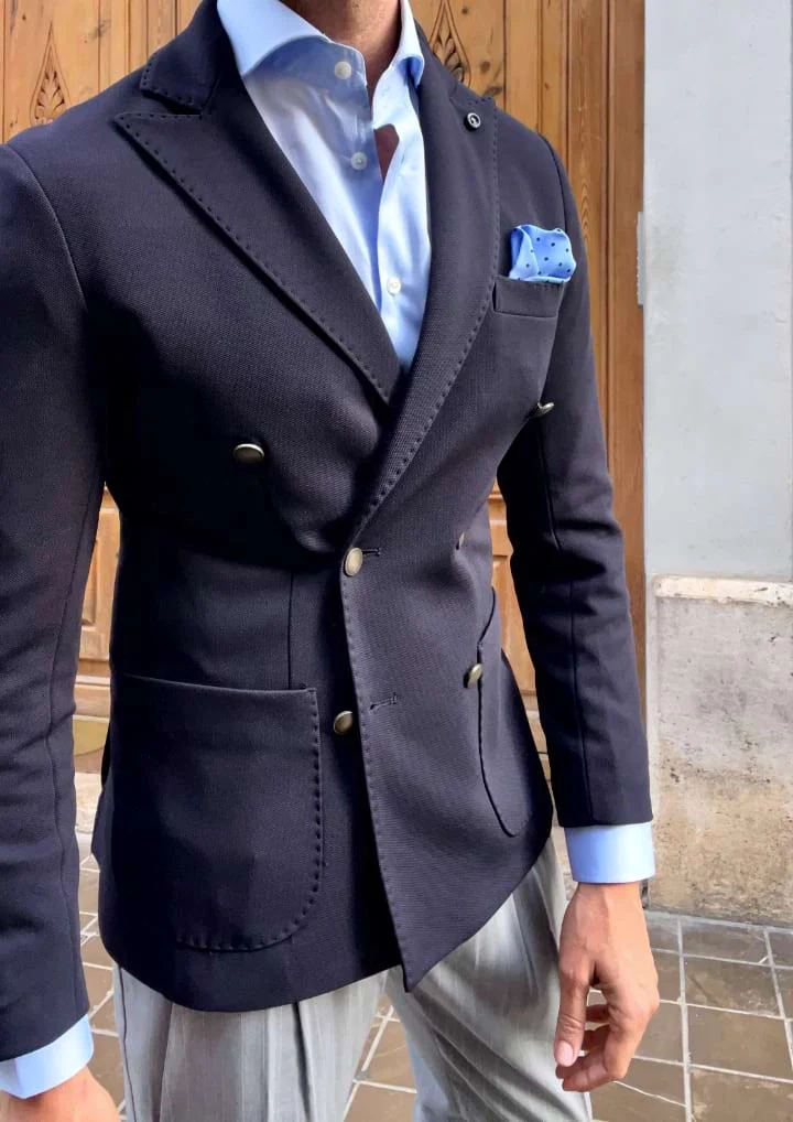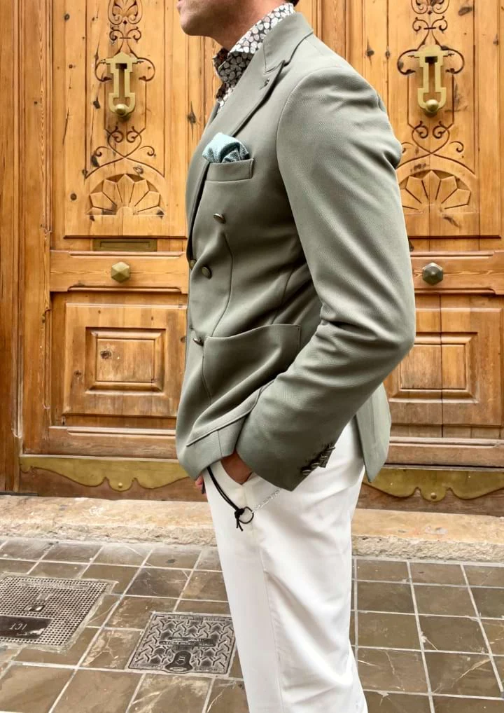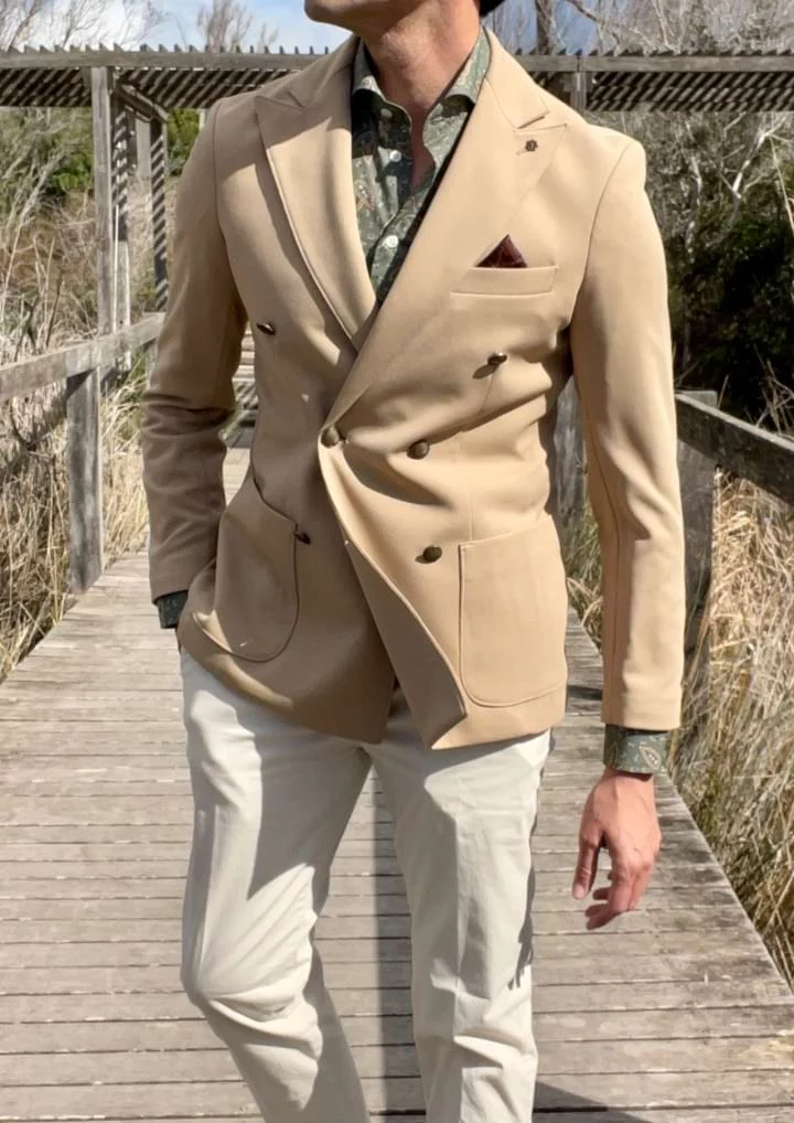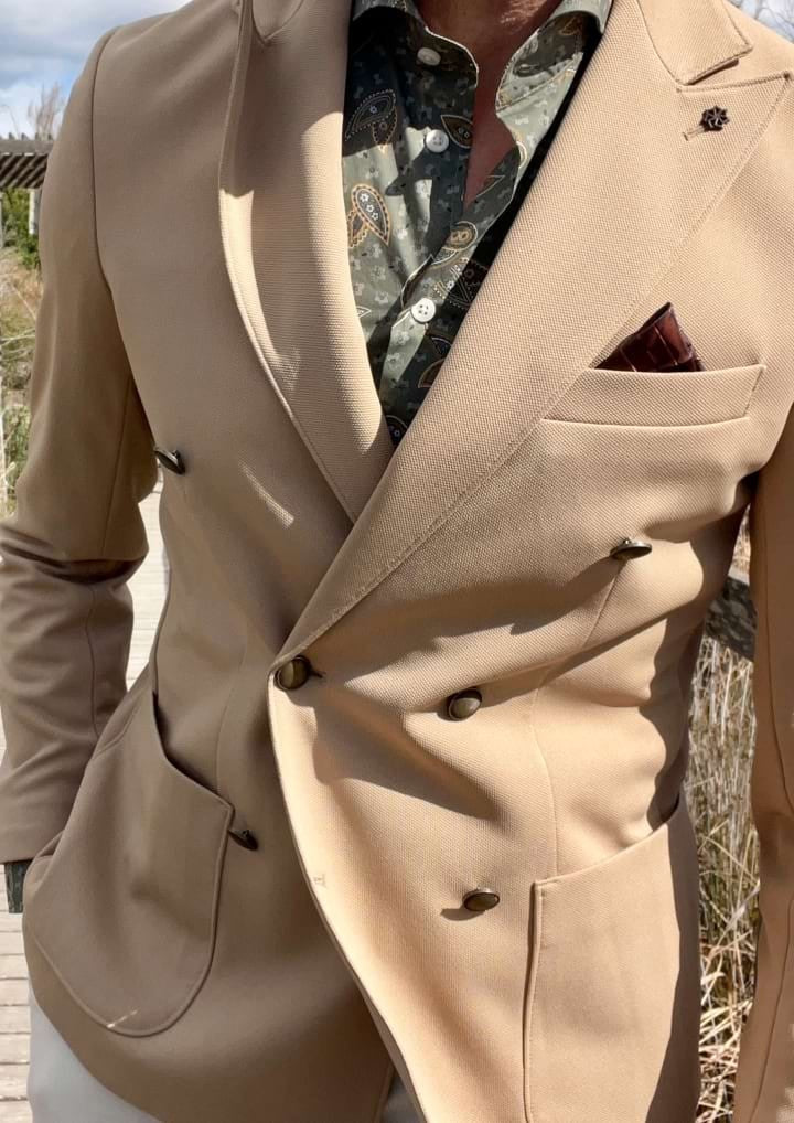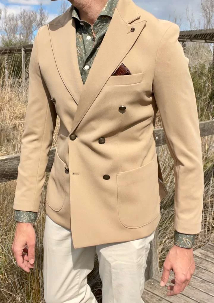 Americana de botones cruzados. Disponible en Camel, azul marino y verde militar.