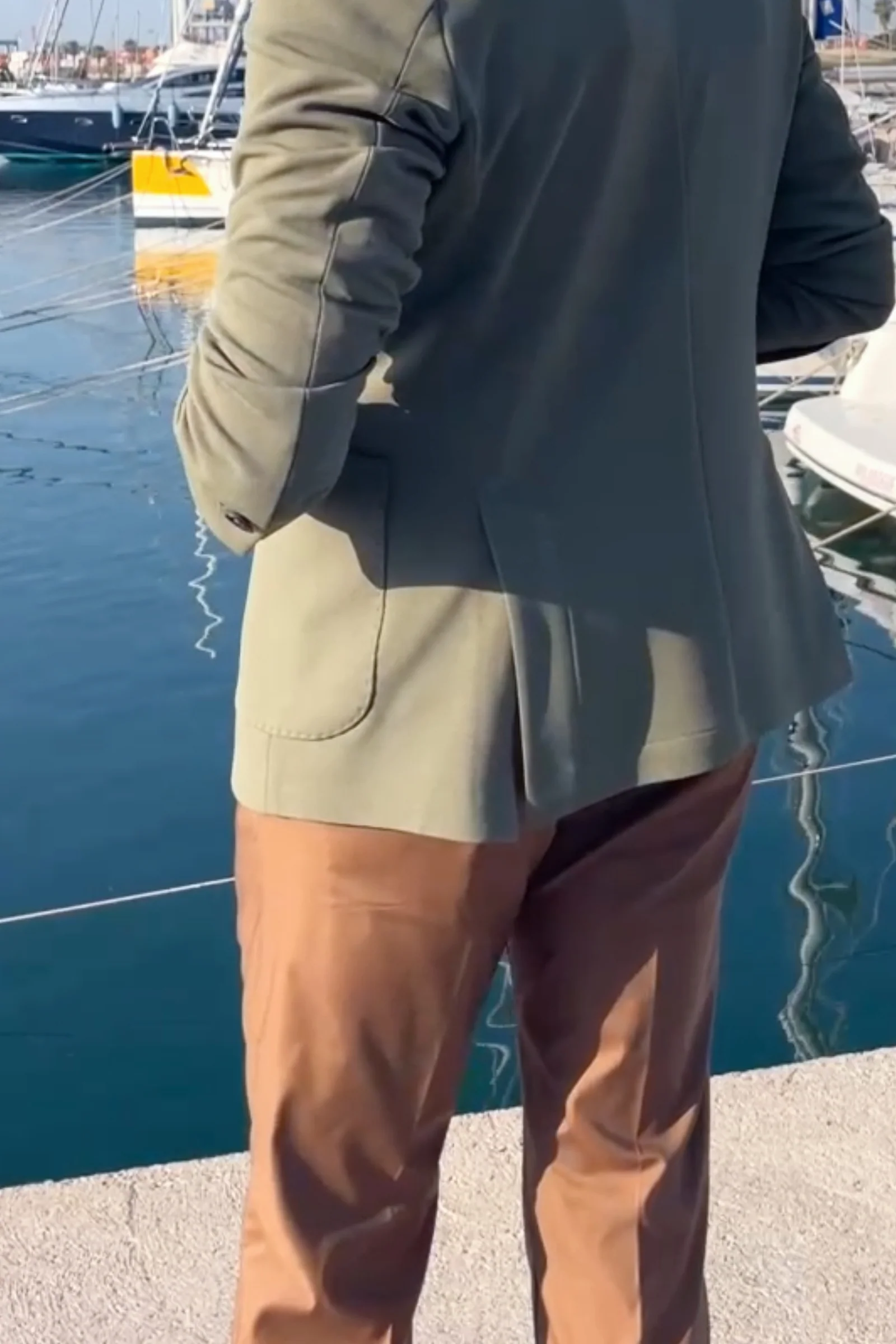 Tiene el corte limpio del buen vestir italiano, pero sin rigideces. Marca hombro, define cintura y cae justo donde debe. El tejido acompaña con cuerpo y flexibilidad. Y el verde militar, discreto pero con carácter, la hace muy versátil.