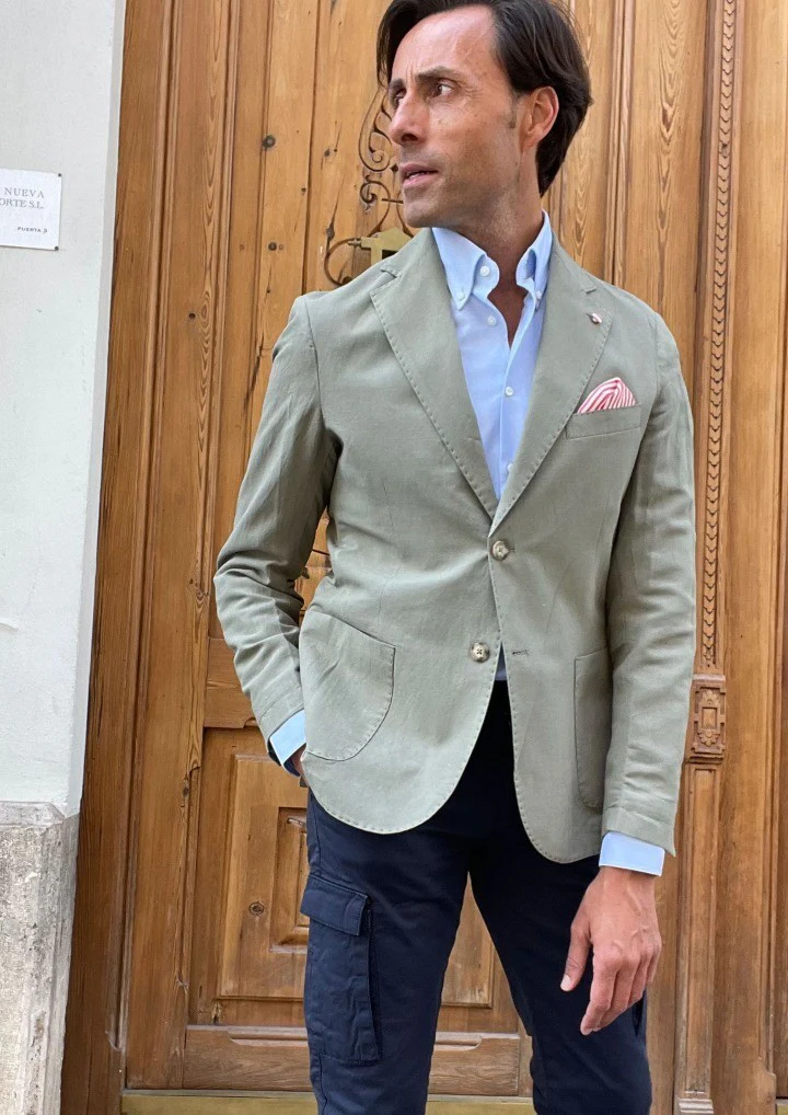 Americana dos botones y dos cortes traseros con bolsillos plaston