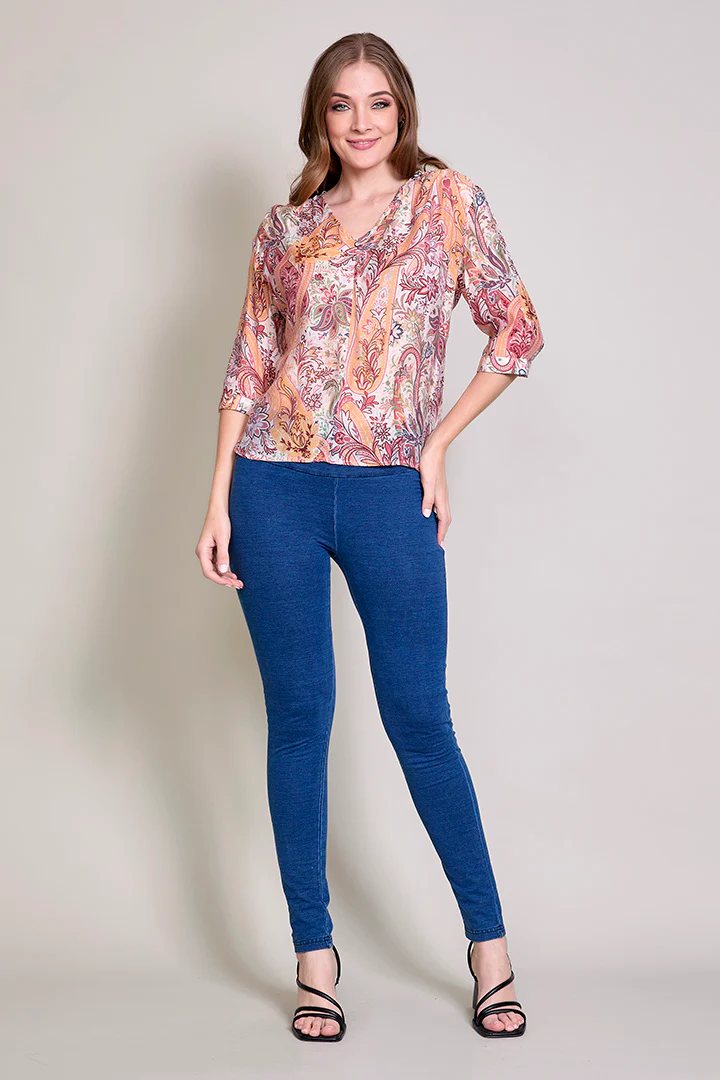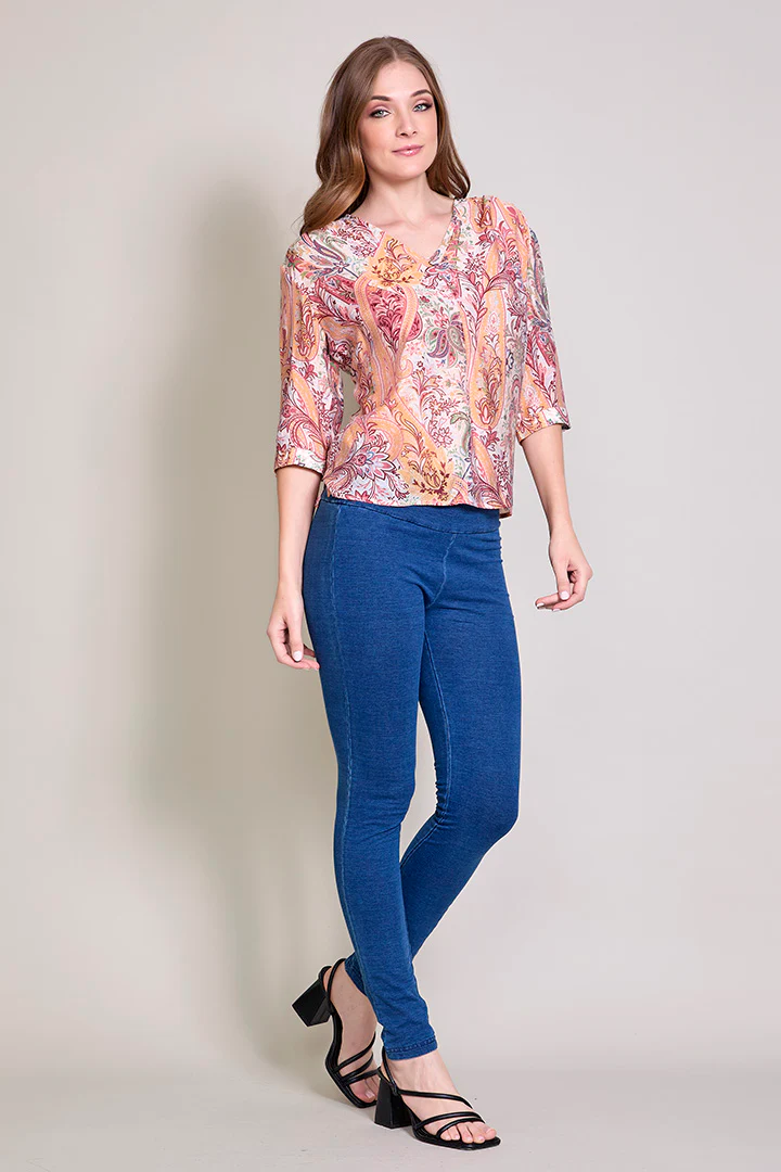 Descripción: Blusa casual estampada cuello V manga 3/4