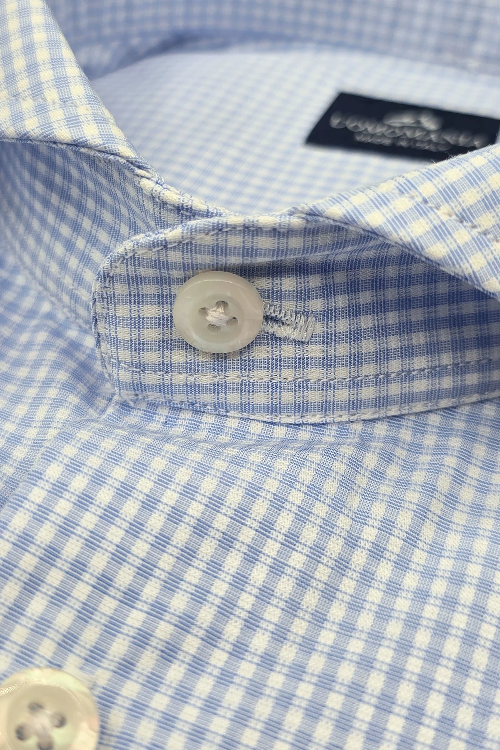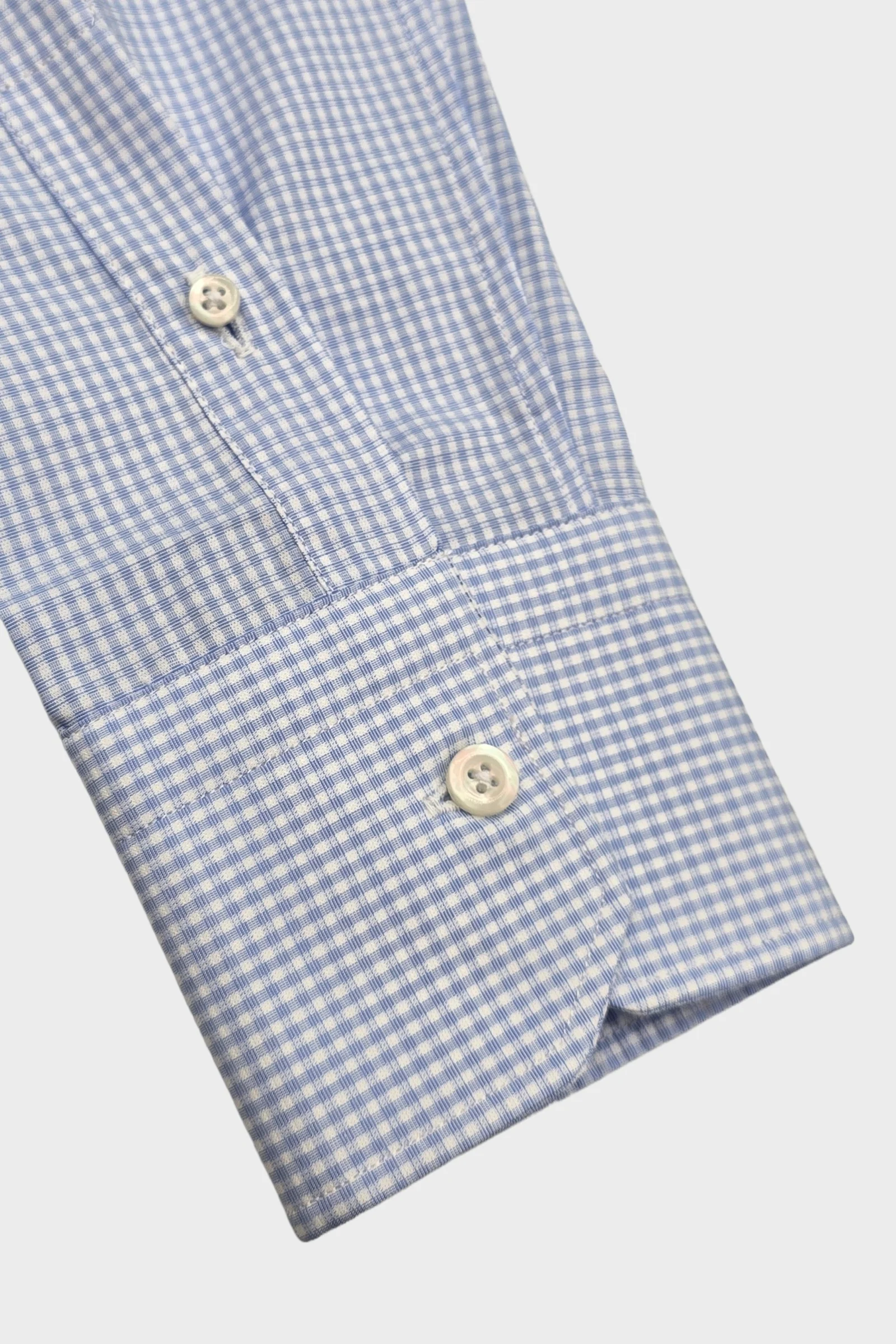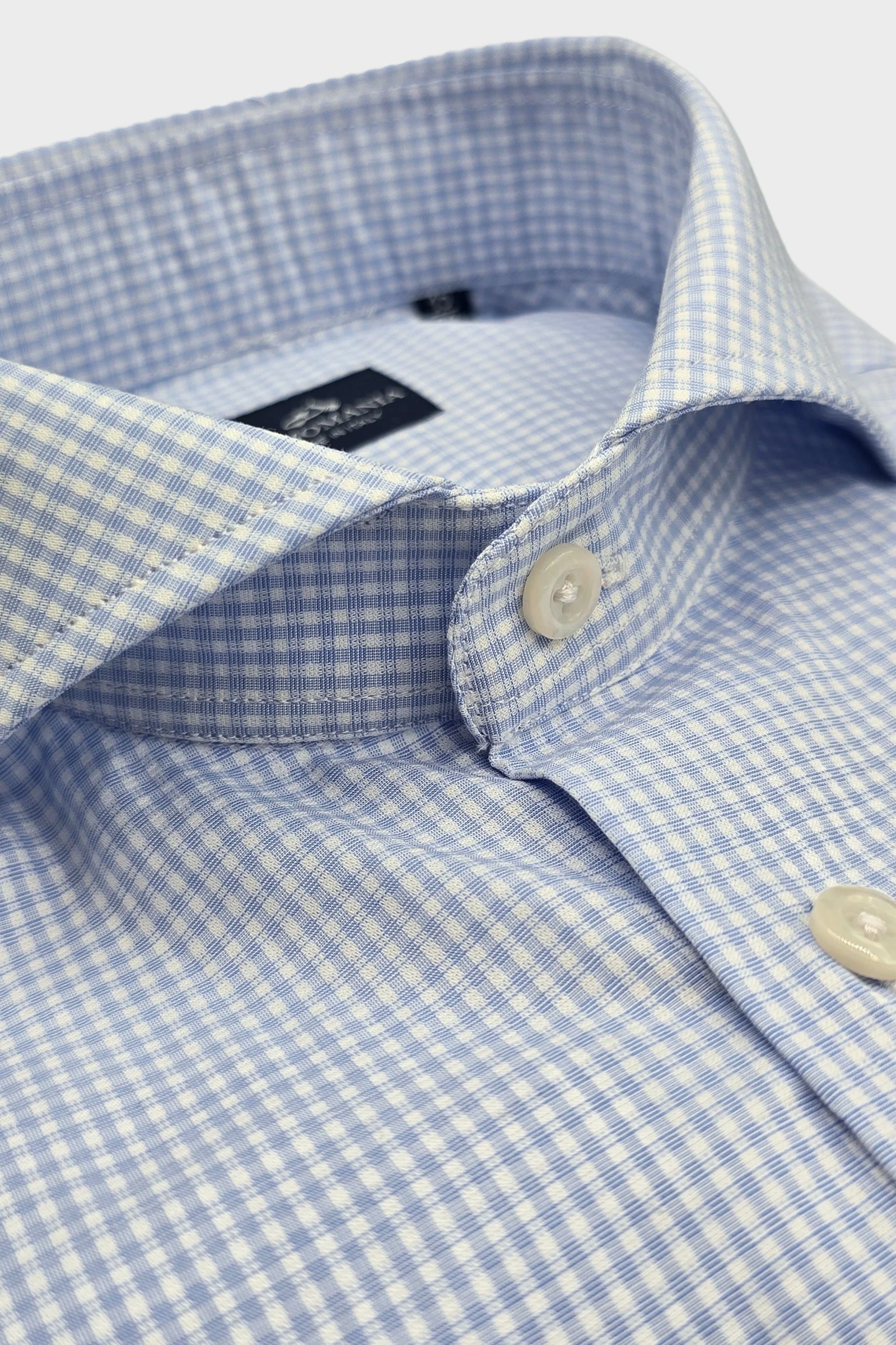 Camisa Oriali en tejido100% algodón. Diseño microcuadros celeste/blanco.