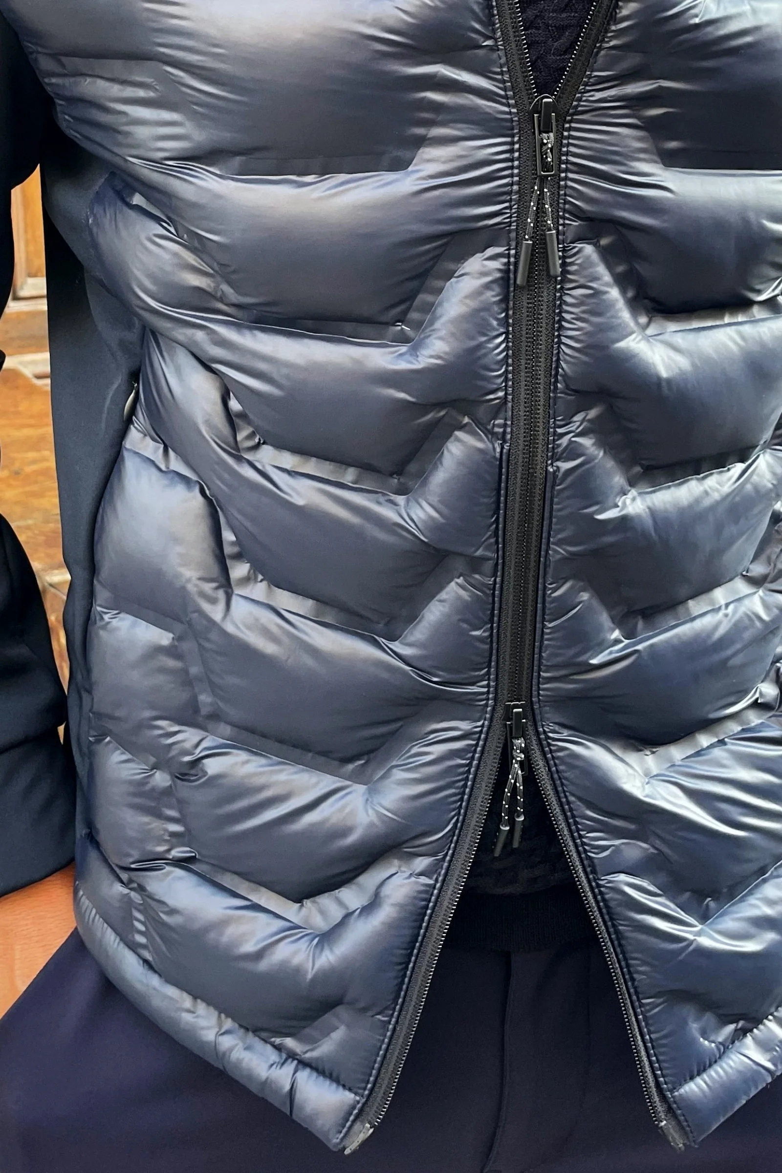 Cremallera doble. Disponible en azul marino y negro