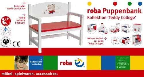 El banco para muñecos Teddy College está hecho de madera maciza y DM con acabado lacado, lo que lo hace resistente y duradero. Puede soportar un peso máximo de 5 kg.