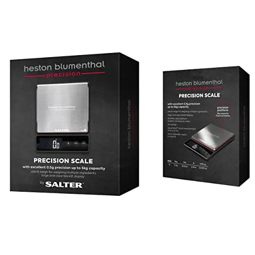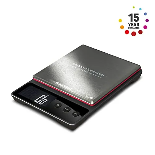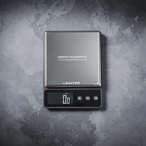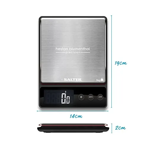 La báscula digital de cocina Salter Heston Blumenthal es la herramienta imprescindible para cualquier amante de la cocina. Con capacidad máxima de carga de 5kg, es perfecta para medir el peso exacto de los ingredientes para tus recetas favoritas. Además, pesa en intervalos de 0.5g para una mayor precisión. Su pantalla LCD retroiluminada te permitirá ver las medidas con claridad en todo momento, incluso en condiciones de baja iluminación. La plataforma de acero inoxidable es higiénica y fácil de limpiar, lo que facilita su uso al usuario. Además, cuenta con las funciones “añadir y pesar” y Aquatronic, para que puedas pesar varios ingredientes en el mismo recipiente, húmedos o secos. Esta báscula es adecuada para pesar desde la levadura de la masa de una pizza hasta los granos del café matutino, y es perfecta tanto para cocinar como para hacer repostería. ¡Haz que tus recetas sean más precisas con la báscula digital de cocina Salter Heston Blumenthal!