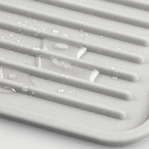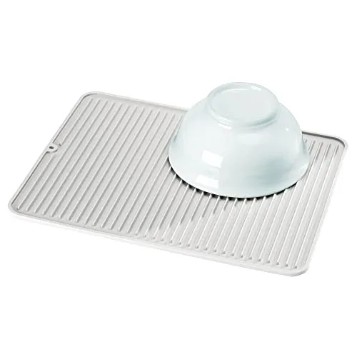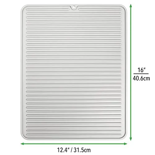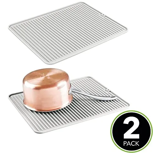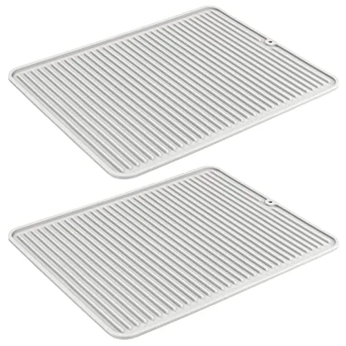 Los tapetes escurridores antideslizantes mDesign vienen en un juego de 2, lo que los hace perfectos para tener siempre uno a mano. Hechos de silicona flexible sin BPA, estas bandejas escurridoras ofrecen suficiente espacio para una amplia variedad de platos y cubiertos. También presentan un moderno diseño de surcos que permite que los vasos, ollas y cubiertos se sequen rápidamente al aire. Además, estas alfombrillas antideslizantes son extremadamente resistentes al calor, por lo que también se pueden utilizar como tapete protector para ollas calientes. La esterilla de silicona es apta para el lavavajillas, lo que la hace especialmente fácil de limpiar.