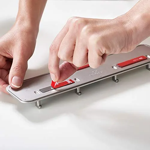 El soporte de almacenamiento con diseño estilizado resulta ideal para montar en espacios estrechos, y su instalación es muy sencilla gracias a la potente cinta adhesiva 3m vhb que incluye. Este juego es apto para lavavajillas y cuenta con mangos de nailon resistentes a altas temperaturas.