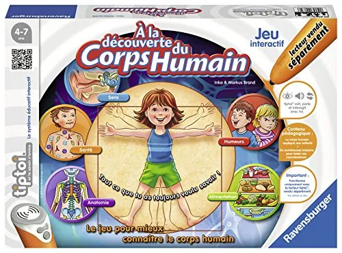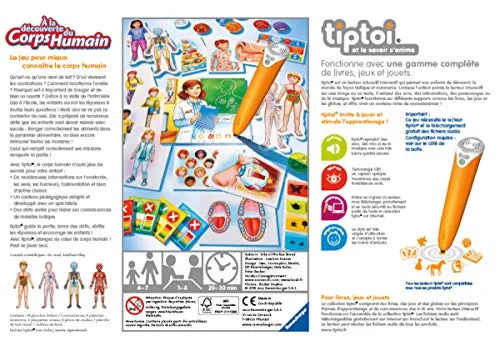 El juego de mesa Ravensburger A La Descubrimiento del Cuerpo Humano tiptoi es perfecto para aquellos niños aficionados a la anatomía. Con este juego, los niños podrán descubrir el cuerpo humano de forma interactiva mientras aprenden sobre la alimentación, los 5 sentidos o el ánimo. El juego incluye 14 tablas para niños, 4 tablas de Anatomía, 4 almohadillas para jugadores, 8 fichas de color, 1 tabla de prueba visual y 1 cuadro de mando. Este juego de mesa es ideal para niños de 4 a 7 años y puede ser jugado por 1 a 4 jugadores. El lector tiptoi no está incluido, pero se puede adquirir por separado. El juego no necesita baterías y no requiere montaje. Las dimensiones del producto son 33.5 x 23.1 x 5.5 cm y pesa 167.83 gramos. El juego viene en una caja y es de material de cartón.