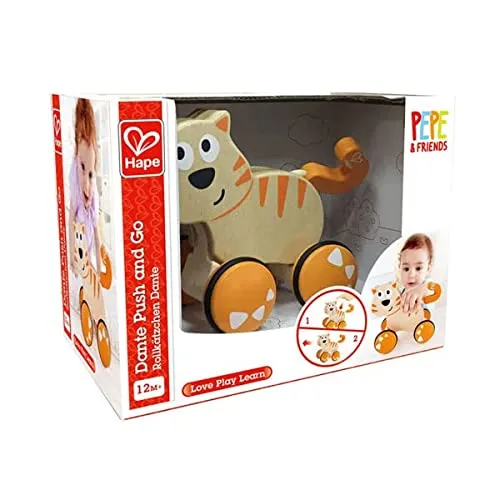 El juguete de madera Dante Push and Go de Hape es el compañero perfecto para los pequeños aventureros. Con solo presionar su lomo, este lindo gato se desplaza hacia delante, mientras su cola se mueve. Ideal para el desarrollo de las habilidades motoras y la diversión de los niños a partir de 12 meses. Además, su mecanismo interior inteligente permite que el juguete se enrolle hacia delante cuando la espalda del gato se presiona hacia abajo y suelta. Dante Push and Go de Hape es un juguete de madera seguro, resistente y duradero que se convertirá en el juguete favorito de tus hijos. ¡Haz que tus hijos se diviertan y experimenten mientras aprenden con Dante Push and Go de Hape!