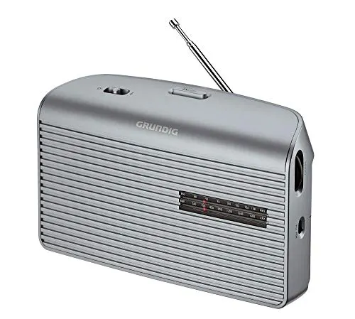 La radio portátil analógica Grundig Music 60 Silver funciona con 4 pilas C (no incluidas) o con alimentación de red. También tiene una toma de auriculares de 3.5mm para escuchar en privado. Incluye manual del usuario y es fácil de usar.