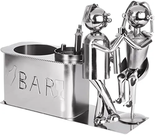 ¿Buscas un regalo original para una pareja enamorada y amante del vino? El soporte de botella de vino BRUBAKER “Amantes en el bar” es la elección perfecta. Hecho de piezas de metal soldadas, este soporte para botellas es hermoso desde todos los ángulos y es un gran atractivo para la vista en cualquier área de la casa.
