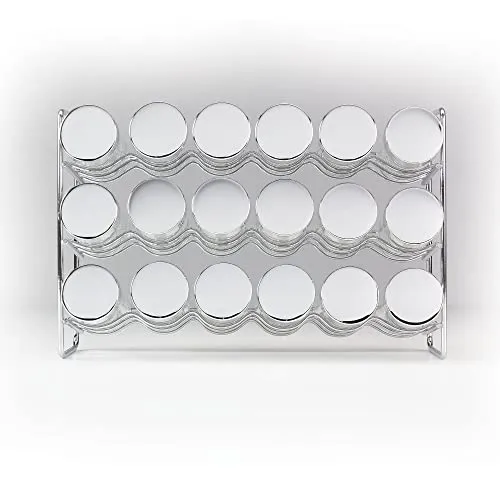 El soporte de especias es fácil de montar y no requiere herramientas especiales. Las botellas de vidrio tienen una capacidad de 5 oz y vienen con tapas perforadas que permiten espolvorear las especias con facilidad. El soporte mide 29.53 x 8.57 x 19.05 cm y pesa 2 kg, lo que lo hace compacto y fácil de colocar en cualquier lugar de la cocina.