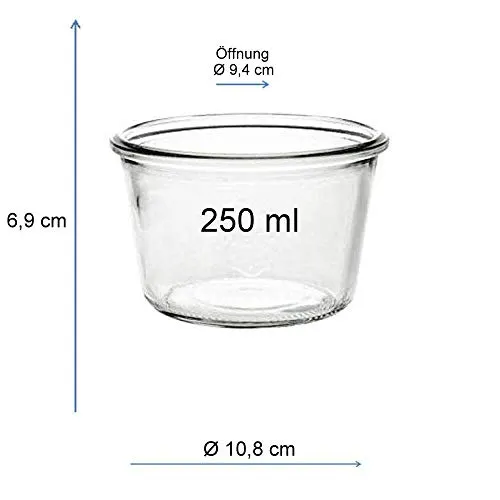 Los tarros de cristal Viva Haushaltswaren son una opción versátil para cualquier hogar. Cada juego incluye seis tarros de 250 ml, perfectos para conservas, postres, especias y más. Los tarros están hechos de vidrio de alta calidad y cuentan con un diseño elegante y clásico con tapa de cristal y gomas para un sellado hermético. Además, cada juego incluye un práctico embudo para facilitar el llenado. Estos tarros son aptos para lavavajillas y resistentes al calor hasta 100°C. Con su versatilidad y diseño elegante, los tarros de cristal Viva Haushaltswaren son una excelente opción para cualquier hogar.