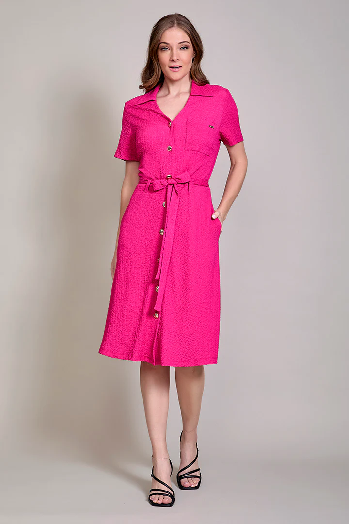 Descripción: Vestido camisero color fiusha con botones manga corta